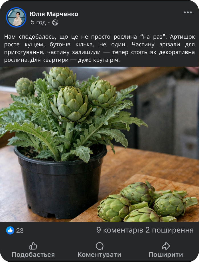 Ресторанний артишок у готовому горщику. Просто ставите — і росте!