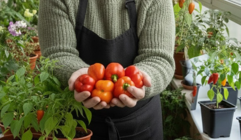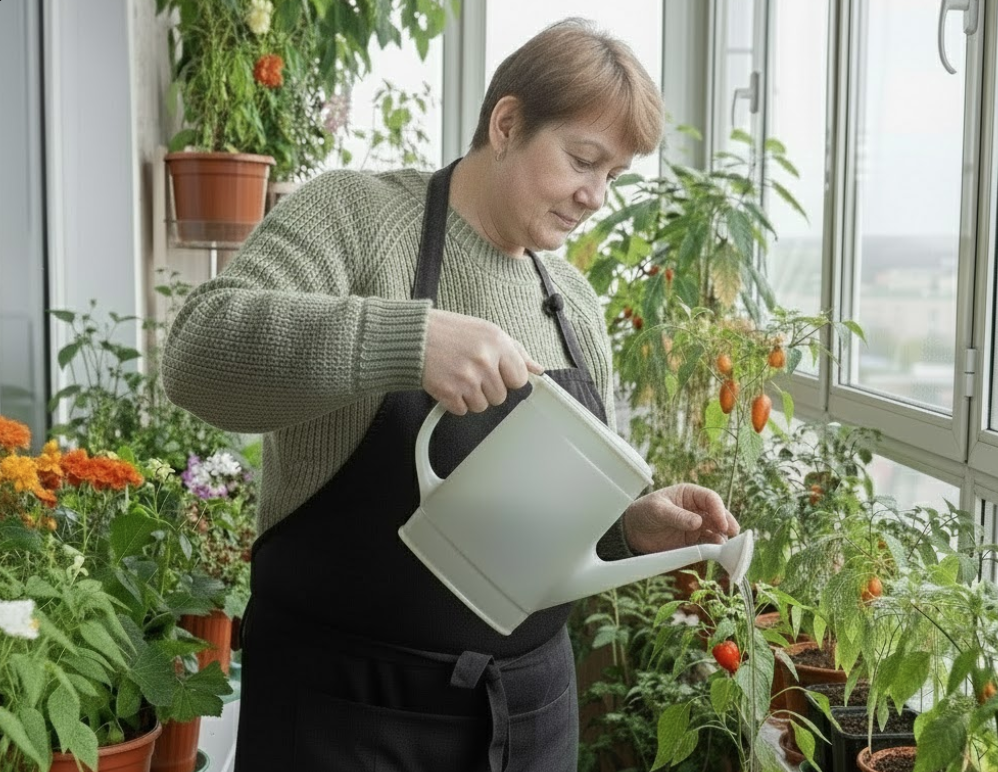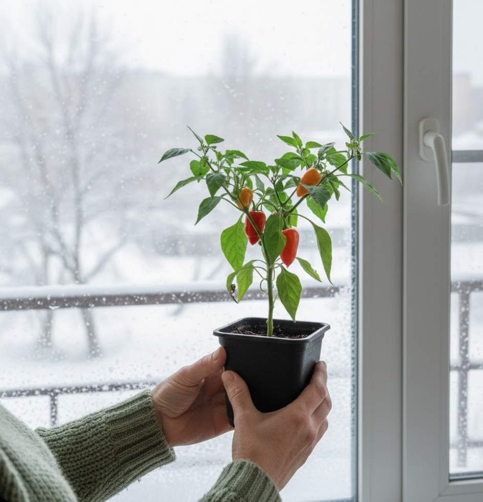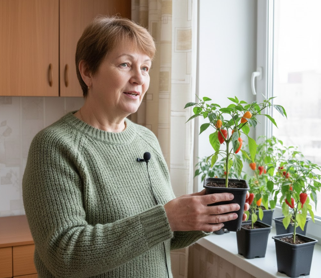 У більшості міських квартир підвіконня — це кілька вазонів «для краси», пил і фіранки. У 56-річної Олени Васевської з Чернівців підвіконня — це справжній міні-город: кущі кімнатного перцю «Гранді», які дають 8–10 хвиль врожаю на рік. З одного горщика вона збирає до 1,2 кг перцю за сезон, а кухня виглядає як маленька теплиця посеред міста.