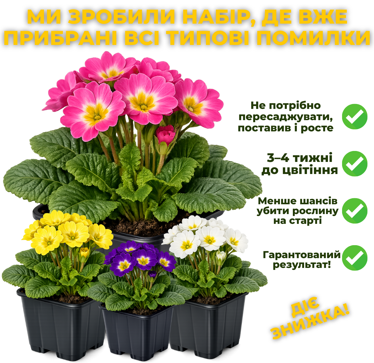 Наша примула — це інший підхід. Ми використовуємо спеціально підібраний поживний субстрат, у якому рослина може нормально рости, а не “доживати”. Насіння вже висаджене правильно, у стабільне середовище, без стресу від пересадок і різких змін. Саме тому примула не бореться за виживання — вона одразу запускає ріст і готується до цвітіння.